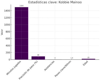 - Kobbie Mainoo tuvo un promedio de 1.9 key‑passes por 90 minutos en 2024/25 en un rol creciente en el primer equipo.