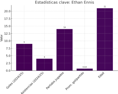 Ennis saltó desde la academia de Liverpool al United en 2021, valorado desde joven como “dos pies, velocidad y gol”. En 2024/25 jugó en préstamo y registró 9 goles y 4 asistencias en 14 partidos en categorías juveniles. Su regreso al United prepara su integración al primer equipo en 2026.