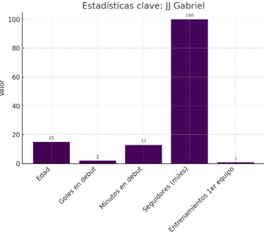 - JJ Gabriel anotó 2 goles en 13 minutos en su debut U18 y fue citado para entrenar con el primer equipo antes de los 15 años.