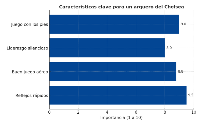 El Chelsea busca porteros con reflejos rápidos, dominio del juego aéreo, liderazgo silencioso y gran capacidad con los pies. Estas cualidades son esenciales en su sistema táctico moderno y han sido respaldadas por declaraciones de entrenadores y decisiones de scouting técnico.