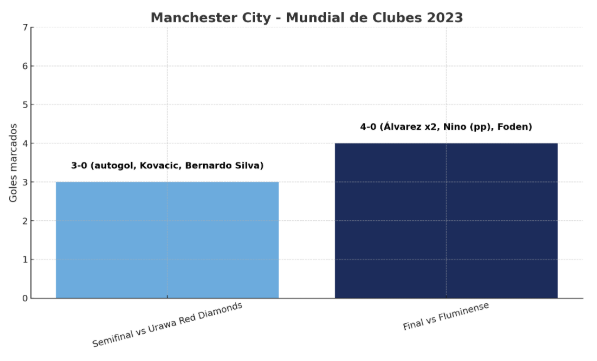 En Yeda, el City superó 3-0 a Urawa Red Diamonds en semifinales (autogol de Høibråten, Kovacic y Bernardo Silva) y goleó 4-0 a Fluminense en la final (Julián Álvarez por partida doble, un autogol de Nino y Phil Foden). Fue un cierre incontestable a su primera participación en el torneo.