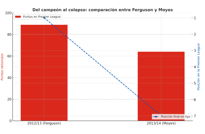 Sin un relevo real ni un modelo claro, el Manchester United pasó en un solo año de campeón absoluto a equipo sin rumbo, dando inicio a un ciclo donde la reacción constante reemplazó al proyecto a largo plazo.
